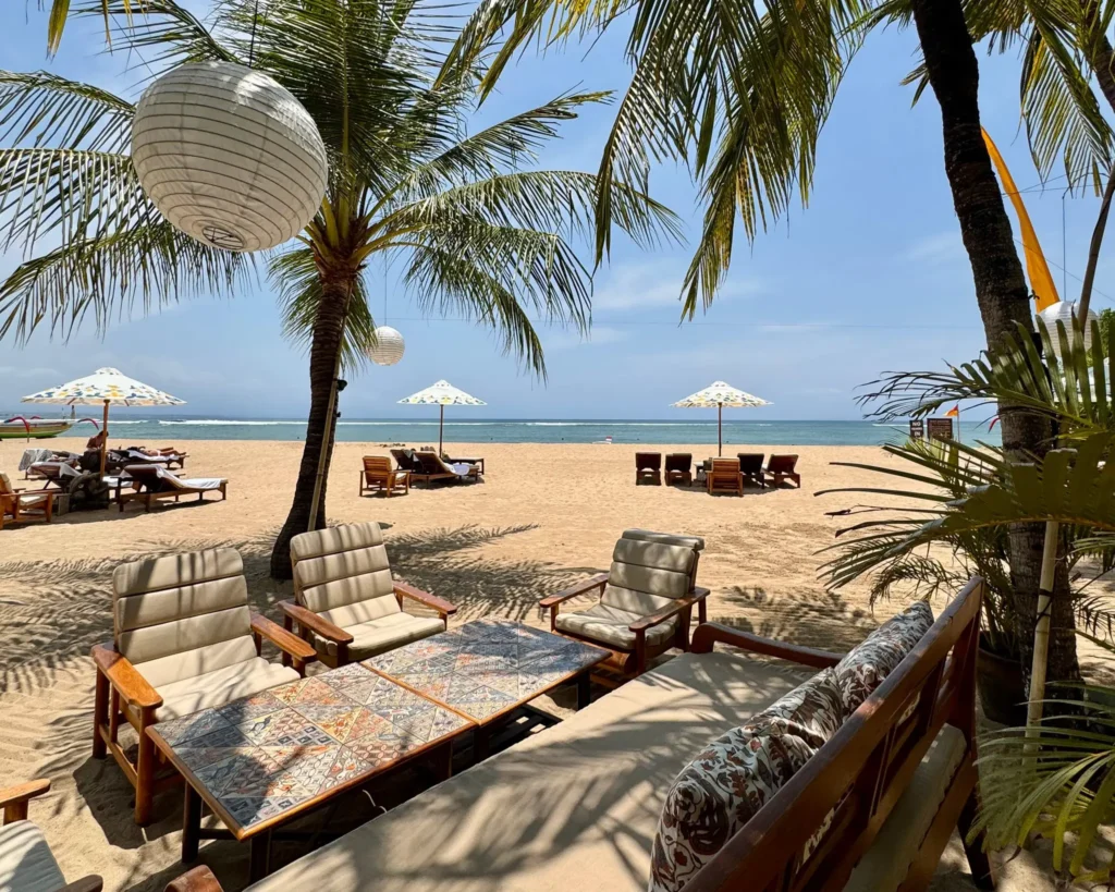 Sanur Beach – Sand Beach Bar & Restaurant (Nähe Icon Mall) sowie Puri Santrian Restaurant