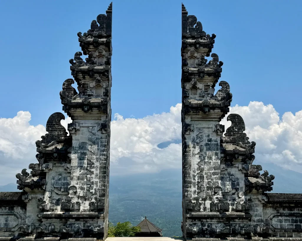 Charakteristisch für Bali sind auch die gespaltenen Tore, die sogenannten Candi Bentar. Sie symbolisieren die Grenze zwischen der materiellen und der spirituellen Welt und sind an vielen Tempeln zu finden.